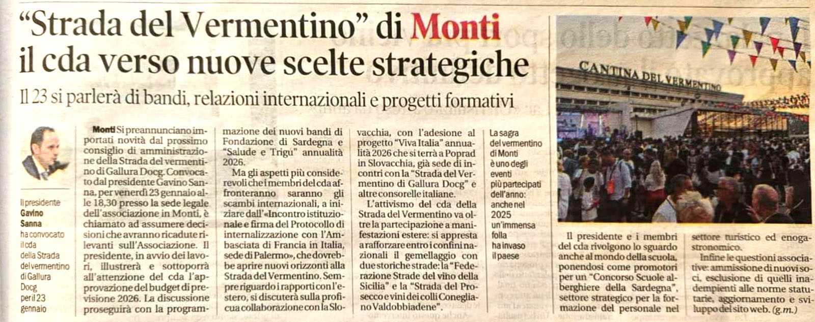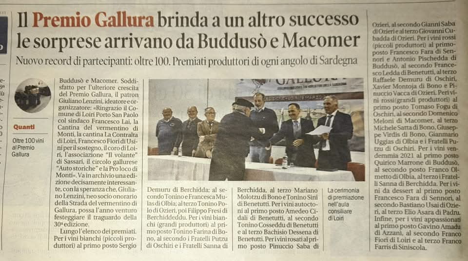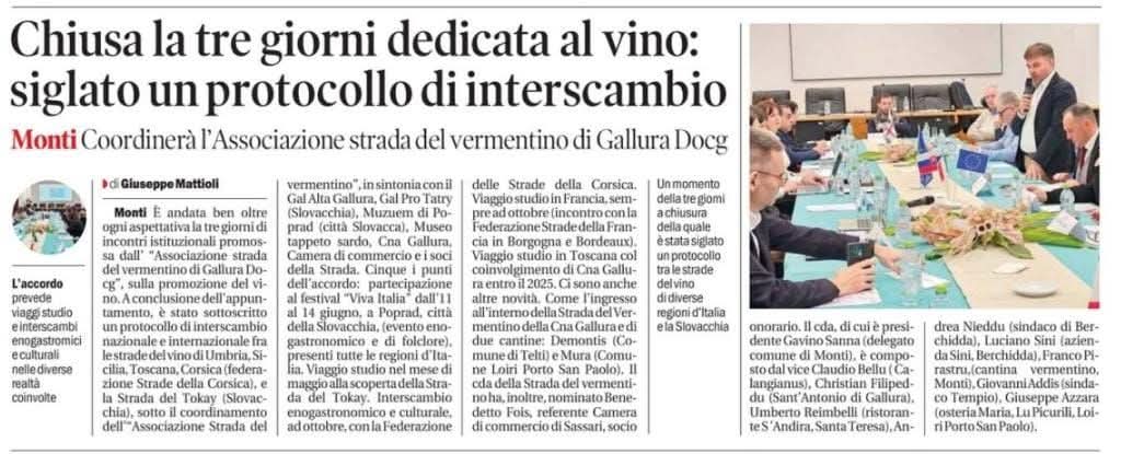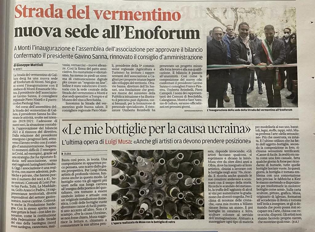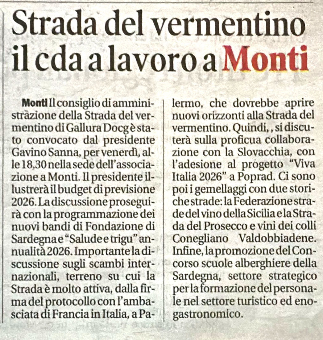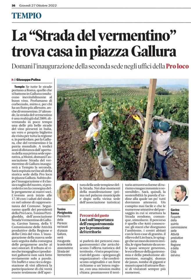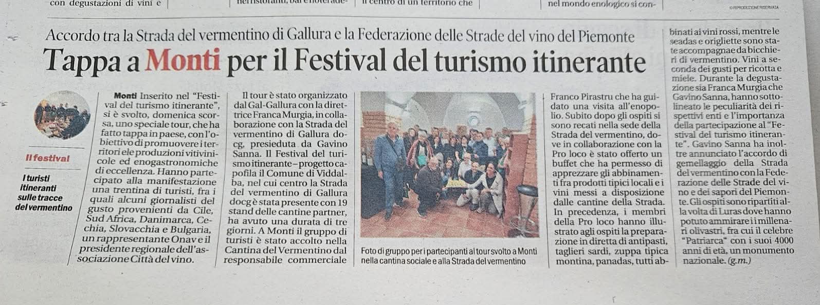 La Strada del Vermentino di Gallura DOCG è un’associazione senza scopo di lucro nata nel 2009 con sede centrale nel Comune di Monti, in via Sa Murighessa. Da oltre un decennio rappresenta un punto di riferimento per la promozione del Vermentino DOCG e del patrimonio enogastronomico gallurese.